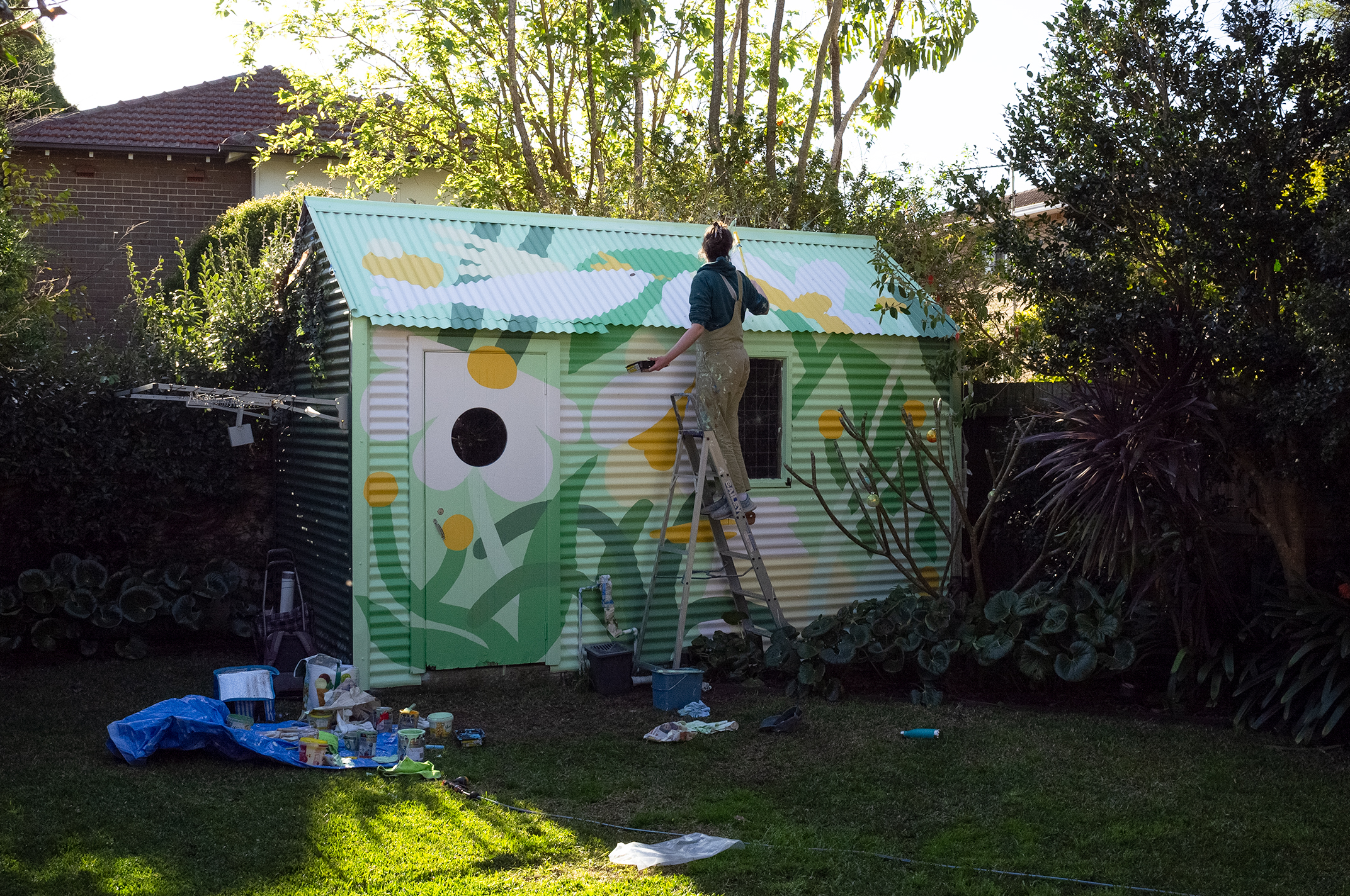 mural designed for residential Sydney garden, reflecting surrounding plant and bird life.